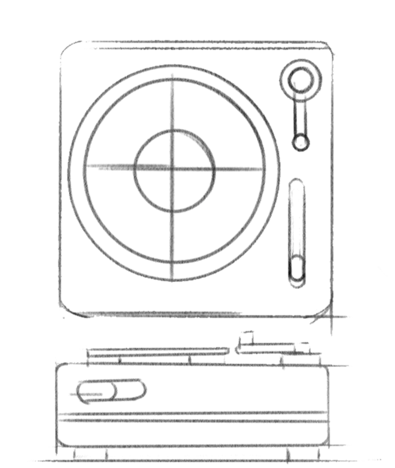 After exploring the product design and functional zoning, I decided to adopt a record player style, integrating user needs into the design. Combining the results from the initial sketch divergence, I finalized the project’s final sketch.
